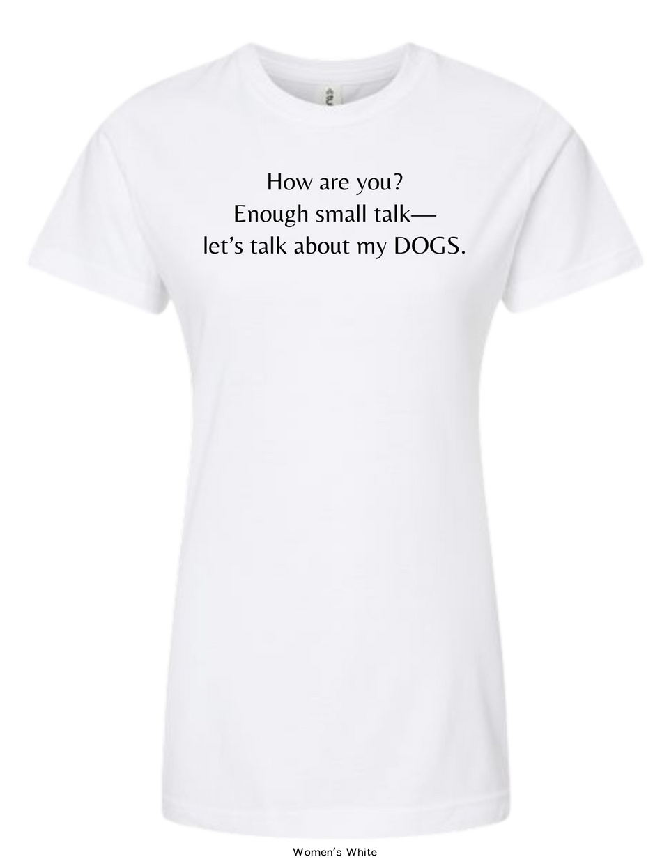 Because, come on, who doesn't want to talk more about their dogs and they're just waiting for the other person to stop talking so you can talk about your dogs? This tee just points that out. There's nothing wrong with that. It's the polite thing to do.